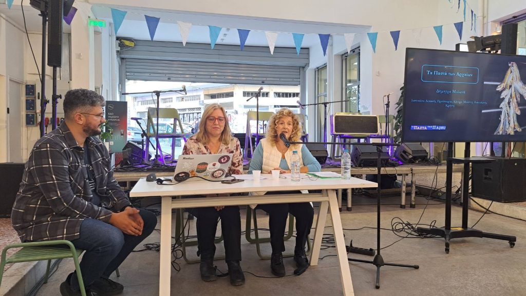 -η Δήμητρα Μυλωνά, αρχαιολόγος του Ινστιτούτου Αιγαιακής Προϊστορίας (Κέντρο Μελέτης Ανατολικής Κρήτης), που ταξίδεψε το κοινό στο παρελθόν με την εισήγησή της «Τα Παστά των Αρχαίων»,