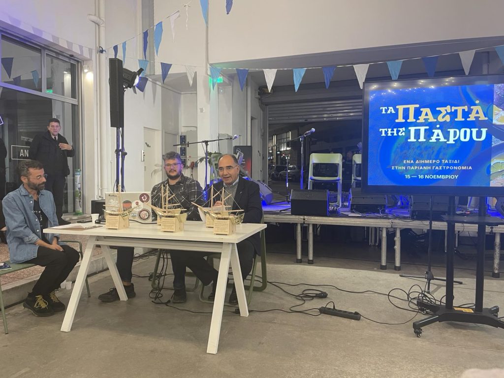 Ο Δήμαρχος Πάρου Κώστας Μπιζάς, στον σύντομο χαιρετισμό του, τόνισε τη σημασία τέτοιων δράσεων που προβάλλουν τον πολιτισμό, τη γαστρονομία και τη βιωσιμότητα του τόπου, υπογραμμίζοντας ότι η Πάρος συνεχίζει να εμπνέει, να δημιουργεί και να ενώνει τους ανθρώπους της, όπου κι αν βρίσκονται.