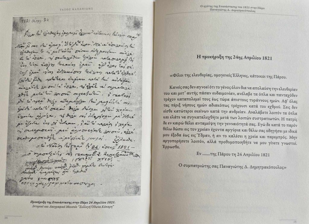 * Η φωτογραφία προέρχεται από το βιβλίο «Ο ηγέτης της Επανάστασης του 1821 στην Πάρο Παναγιώτης Δ. Δημητρακόπουλος» του Ιστορικού-Αρχαιολόγου Τάσου Κασαπίδη, το οποίο εκδόθηκε το Μάρτιο του 2023 από το Ναυτικό Όμιλο Νάουσας Πάρου «Ναϊάς».