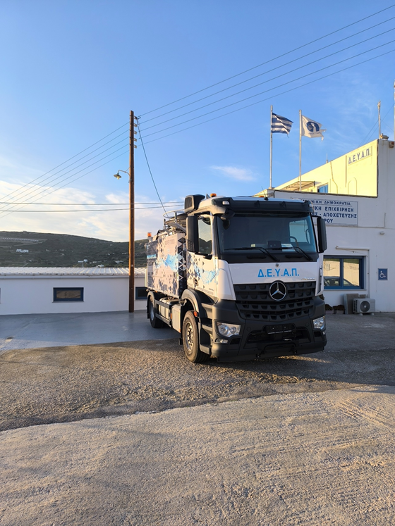 Με το τέλος της προηγούμενης χρονιάς, η ΔΕΥΑΠ παρέλαβε ένα νέο σημαντικό όχημα που θα εξοπλίσει τον στόλο της Τεχνικής Υπηρεσίας. Πρόκειται για ένα μεγάλο σύνθετο αποφρακτικό μηχάνημα τύπου Wiedeman Super 2000, το οποίο συνδυάζεται με αμάξωμα Mercedes Arocs. Ο κινητήρας του οχήματος είναι νέας αντιρρυπαντικής τεχνολογίας EURO 6D, ισχύος 400hp, με αυτόματο κιβώτιο ταχυτήτων. Η υπερκατασκευή είναι από ανοξείδωτο χάλυβα και έχει μία δεξαμενή ακαθάρτων 4m³ και μία δεξαμενή νερού 4m³. Διαθέτει αντλία κενού 2.000m3/hr σε 400Mbar και ειδικό βραχίονα αναρρόφησης για απάντληση υγρών από βαθιά φρεάτια, αντλιοστάσια, αγωγούς ομβρίων κτλ. Επίσης, έχει αντλία υψηλής πίεσης με παροχή τουλάχιστον 300lt/min στα 150bar και λάστιχα απόφραξης 1 1/4΄΄ και 3/4΄΄, για αποτελεσματικούς καθαρισμούς σωληνώσεων. Σημαντική είναι και η δυνατότητα ανακύκλωσης του νερού που αντλεί, με ειδική διάταξη που διαθέτει, για να το επαναχρησιμοποιεί στις εργασίες απόφραξης.