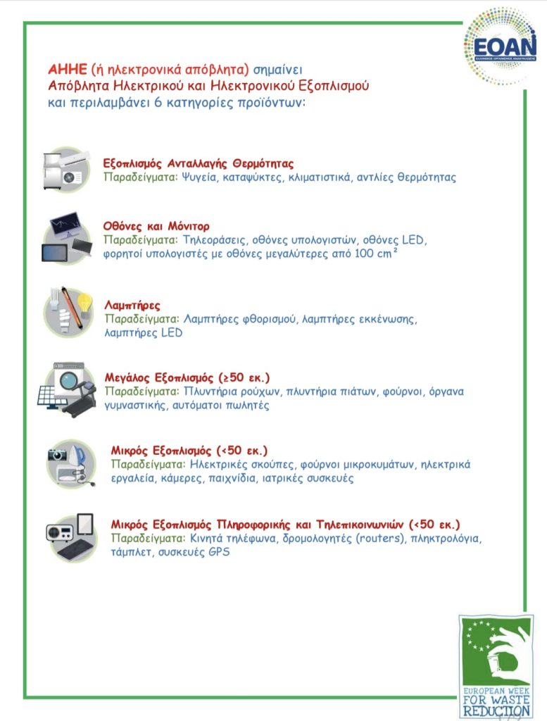 Ακολουθεί το πρόγραμμα, με ημερομηνίες και ώρες ανά περιοχή του νησιού μας, για τη συλλογή ΑΗΗΕ: