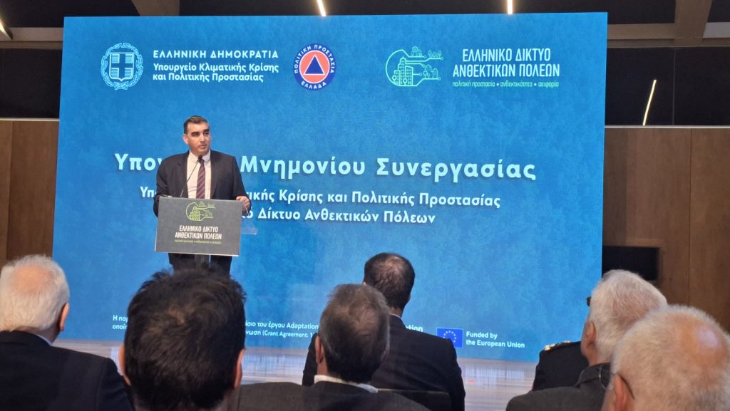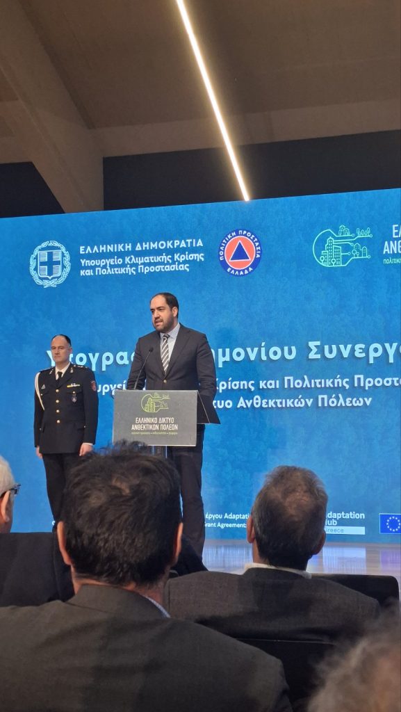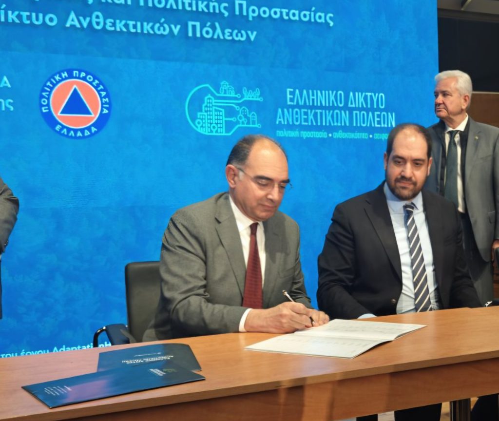 Τη Δευτέρα 30 Μαρτίου 2026, στο Ωδείο Αθηνών, πραγματοποιήθηκε η τελετή υπογραφής Μνημονίου Συνεργασίας μεταξύ του Υπουργείου Κλιματικής Κρίσης και Πολιτικής Προστασίας και του Ελληνικού Δικτύου Ανθεκτικών Πόλεων.